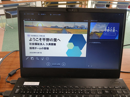 今回は「採用活動」が軸の視察ということですが、久美愛園様とは、埼玉県発達障害福祉協会の活動でも各職員が大変お世話になっておりますし、児童入所の久美学園より成人施設への移行先として当法人へ支援のバトンを受け継いだご利用者様もおり、日頃より繋がりのある法人さんですが、改めて「採用」という部分で視察のお話を頂き、恐縮ではございましたが、いつも通りの平野の里流のおもてなしで、貴重な機会を頂きました。