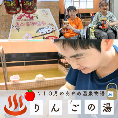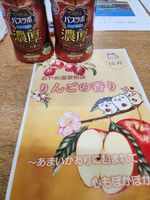 どうもこんばんは…今月のあやめ温泉物語…10月は「りんご」の入浴剤を使用しました。