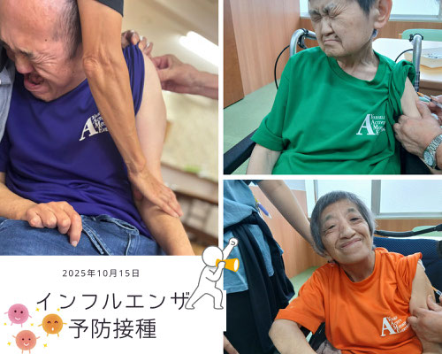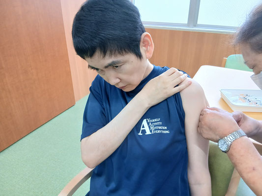リアルタイム更新ということで、本日、インフルエンザ予防接種が行われ、日頃より大変お世話になっております、五霞町の芝田クリニックの院長先生と看護師さんが来寮下さり、ご利用者様や職員が予防接種を受けました。